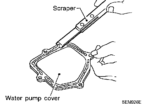 35. Use scraper to remove all traces of liquid gasket from water pump cover, chain tensioner cover and intake valve timing control covers.