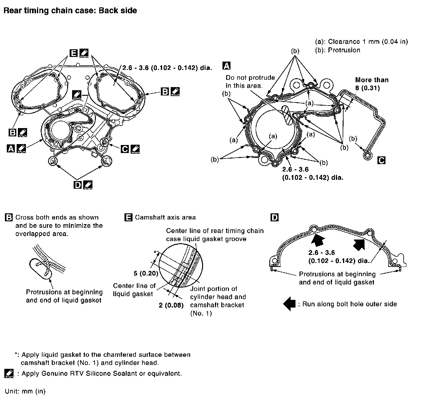 Rear timing chain case to cylinder block: -0.24 to 0.14 mm (-0.0094 to 0.0055 inch)