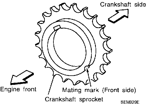 ^ Make sure the mating marks on crankshaft sprocket face the front of engine.