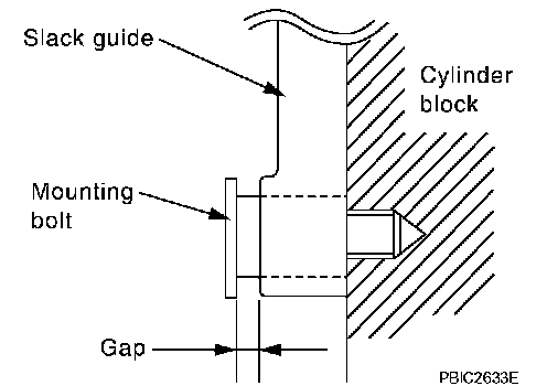 CAUTION: Do not overtighten slack guide mounting bolts. It is normal for a gap to exist under the bolt seats when mounting bolts are tightened to specification.
