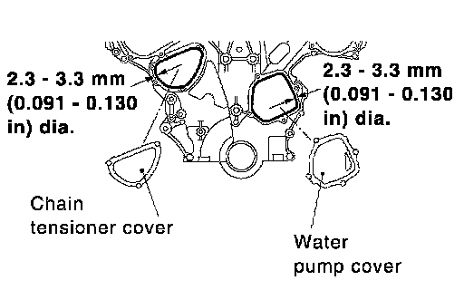 b. Apply a continuous bead of liquid gasket with tube presser [SST: WS39930000 ( - )] to intake valve timing control covers as shown in the figure.