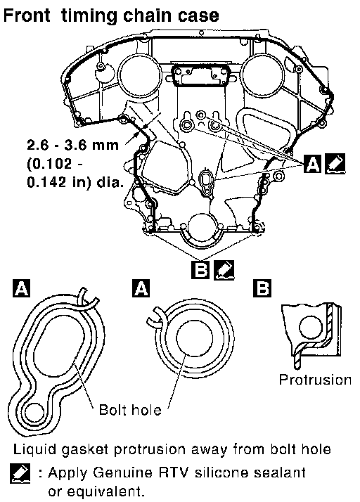^ This section describes procedures for removing/installing front timing chain case and timing chain related parts, and rear timing chain case, when oil pan (upper) needs to be removed/installed for engine overhaul, etc.