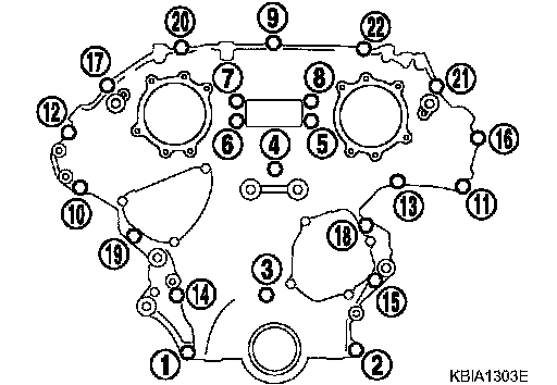 CAUTION: Be sure to wipe off any excessive liquid gasket leaking on surface mating with oil pan (upper).