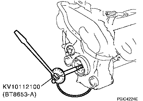 a. Fix crankshaft using ring gear stopper [SST: KV10117700 (J44716)].