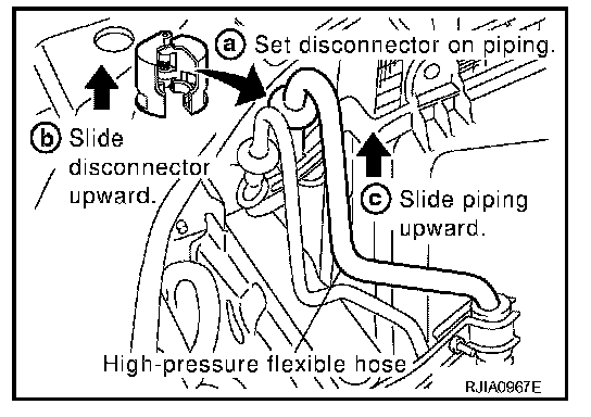 a. Set a disconnector [condenser outlet (SST: 9253089908), condenser inlet (SST: 9253089912)] on A/C piping.