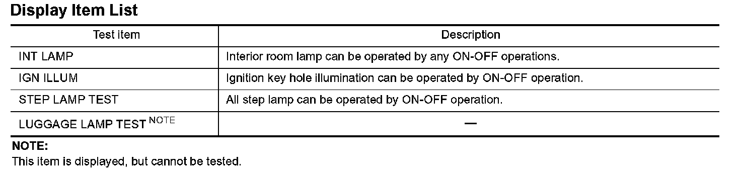 1. Touch "INT LAMP" on "SELECT TEST ITEM" screen.