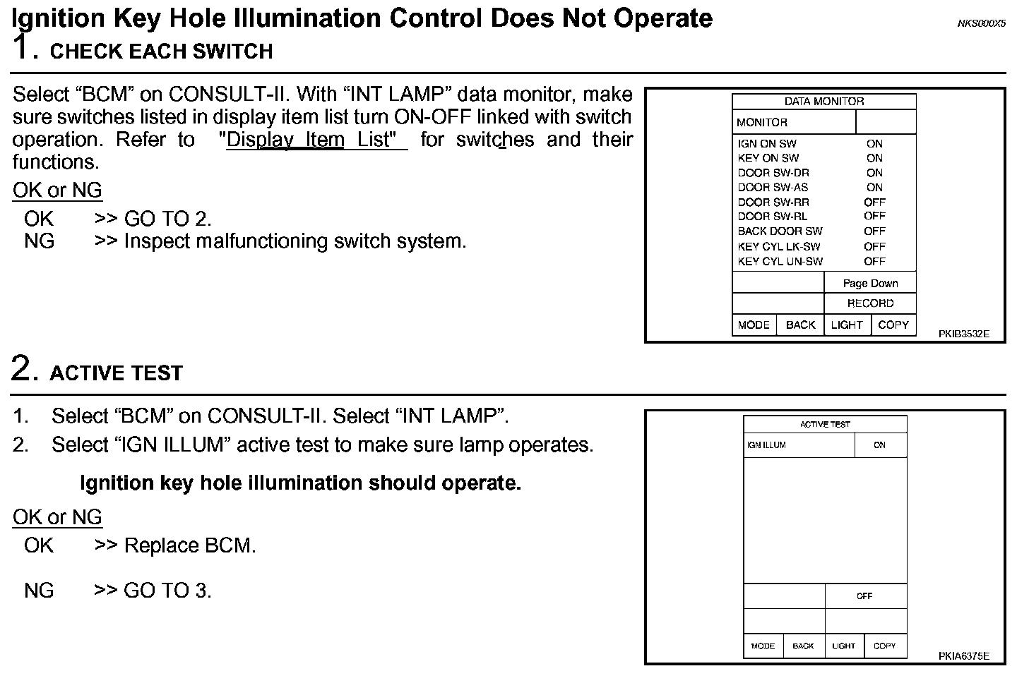 Ignition Key Hole Illumination Control Does Not Operate (Steps 1 - 2):