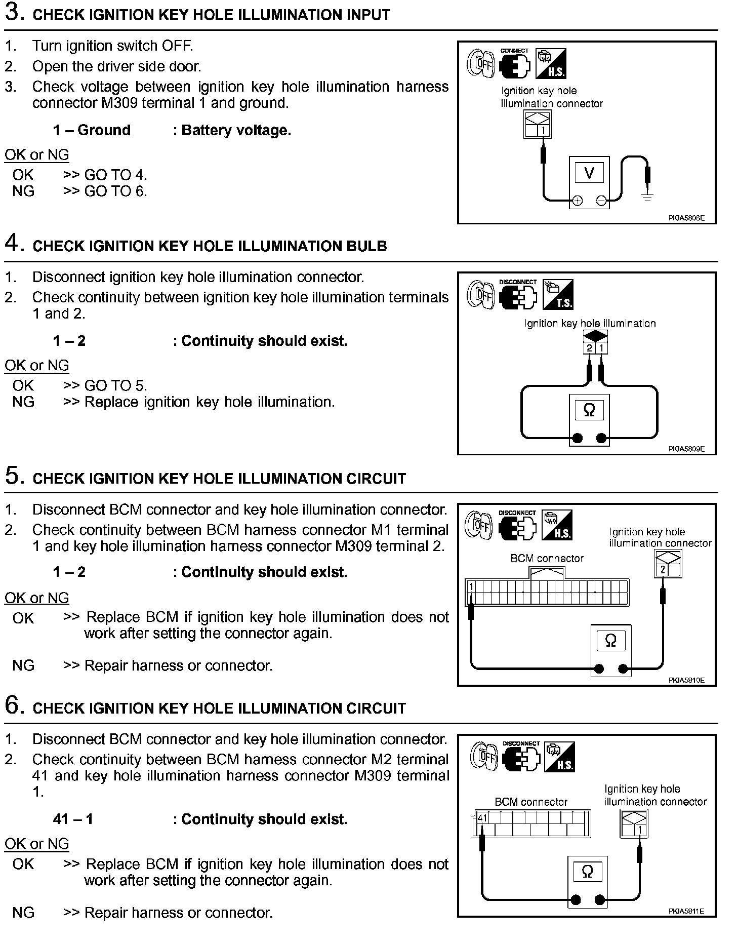 Ignition Key Hole Illumination Control Does Not Operate (Steps 3 - 6):