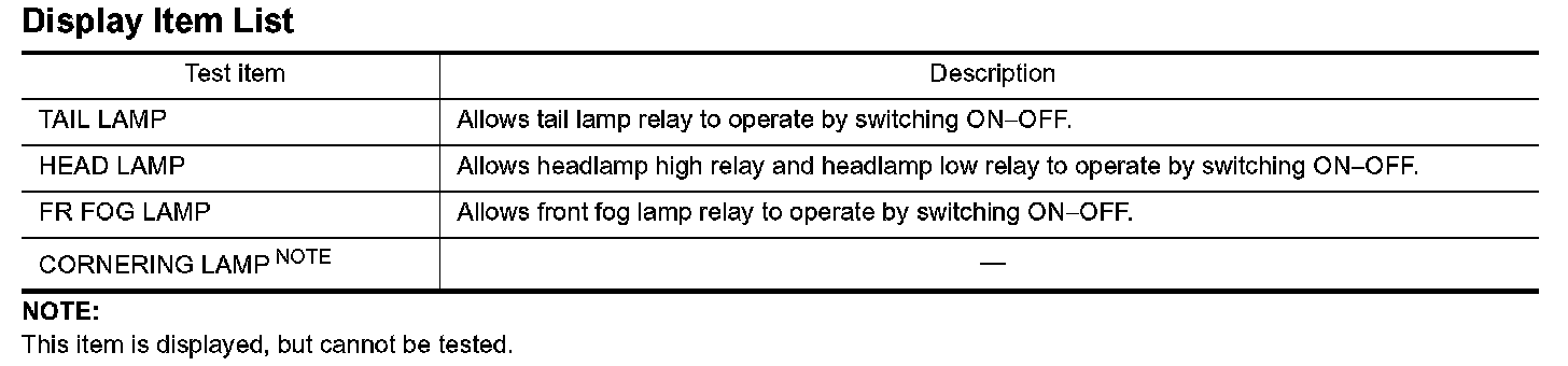 1. Touch "HEAD LAMP" on "SELECT TEST ITEM" screen.