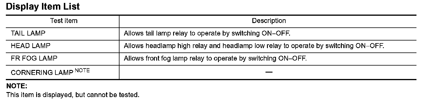 1. Touch "HEAD LAMP" on "SELECT TEST ITEM" screen.
