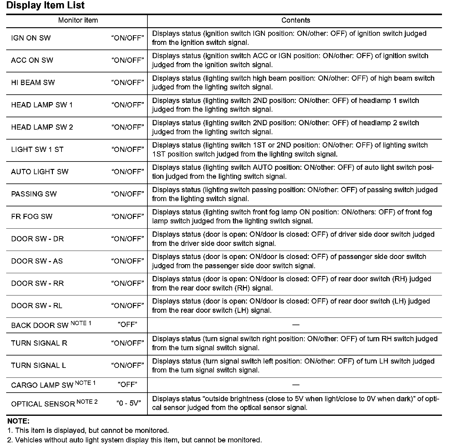 1. Touch "HEAD LAMP" on "SELECT TEST ITEM" screen.