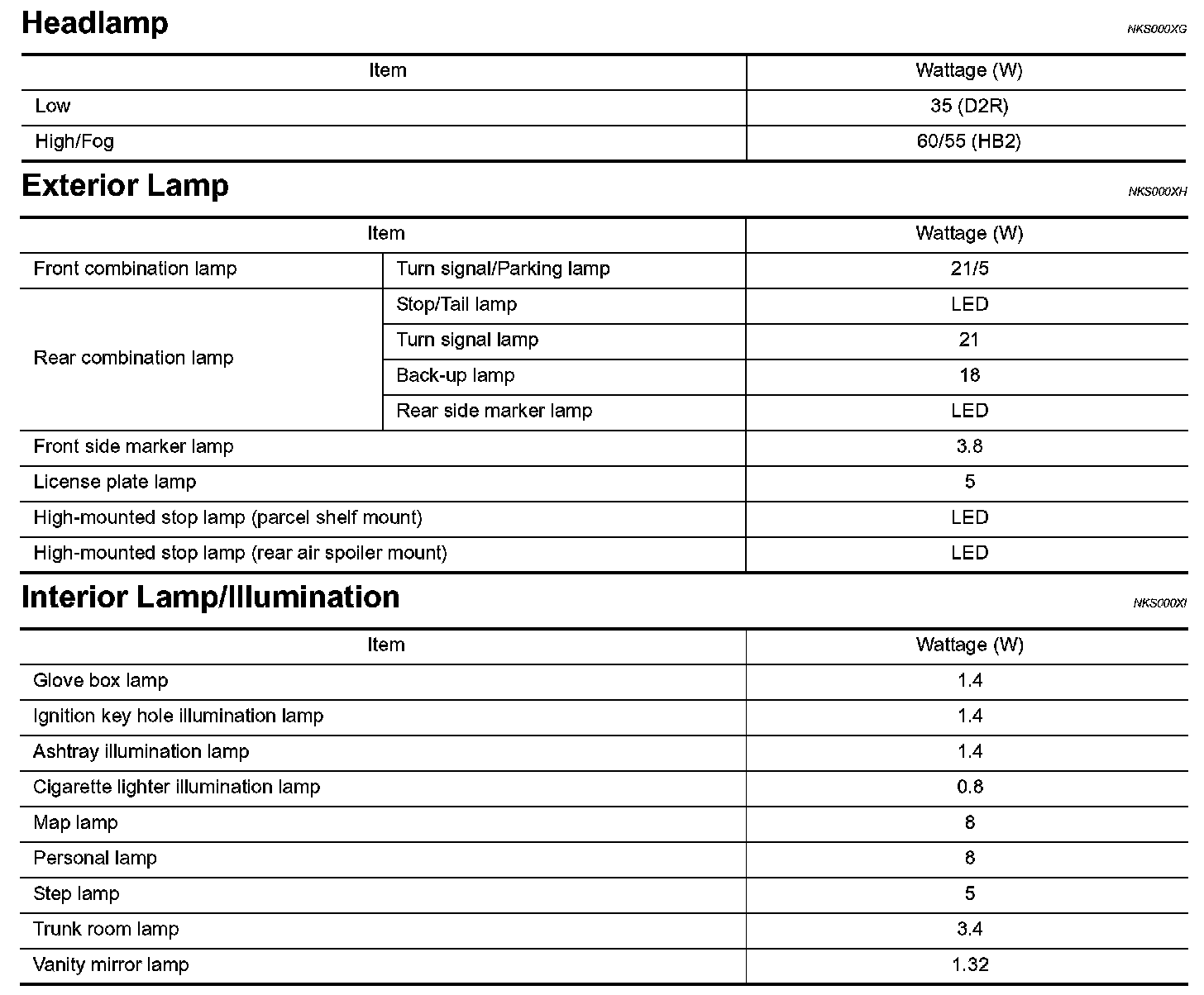Lighting and Horns: Specifications