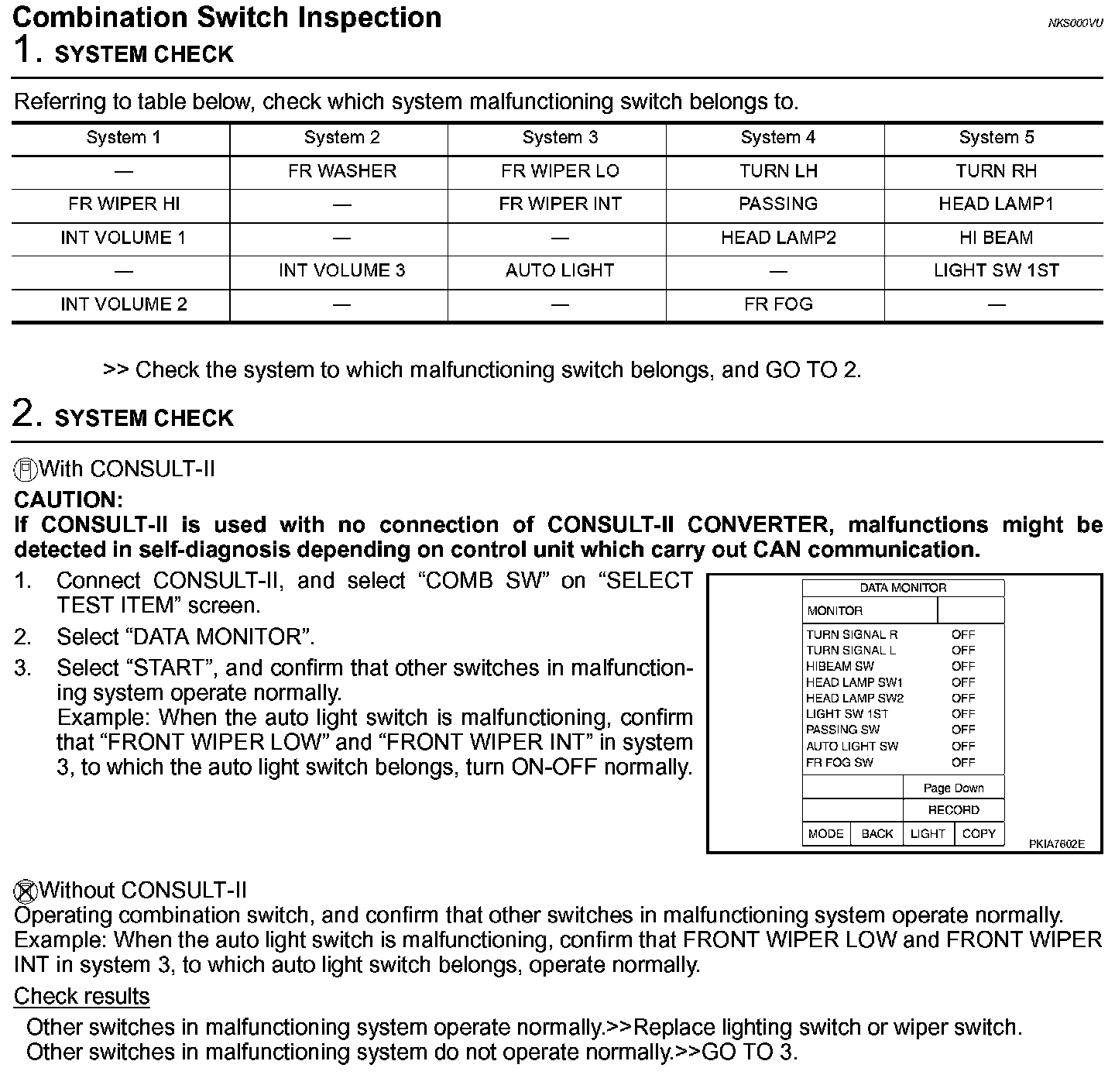 Combination Switch Inspection (Steps 1 - 2):