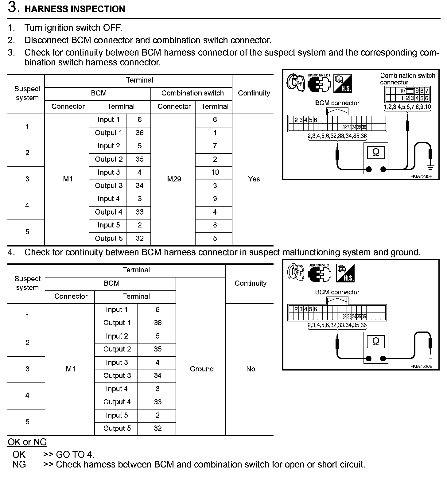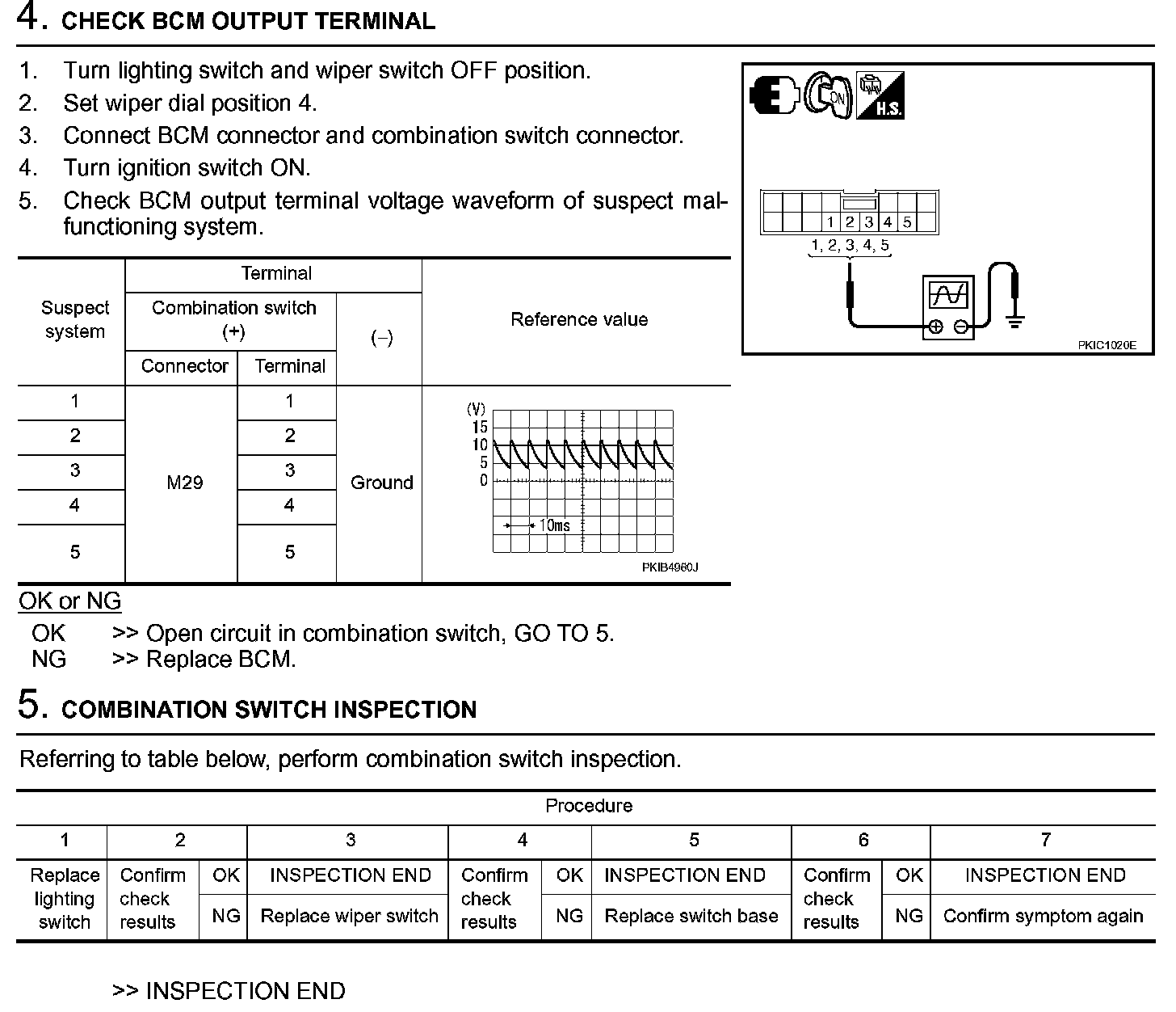 Combination Switch Inspection (Steps 4 - 5):