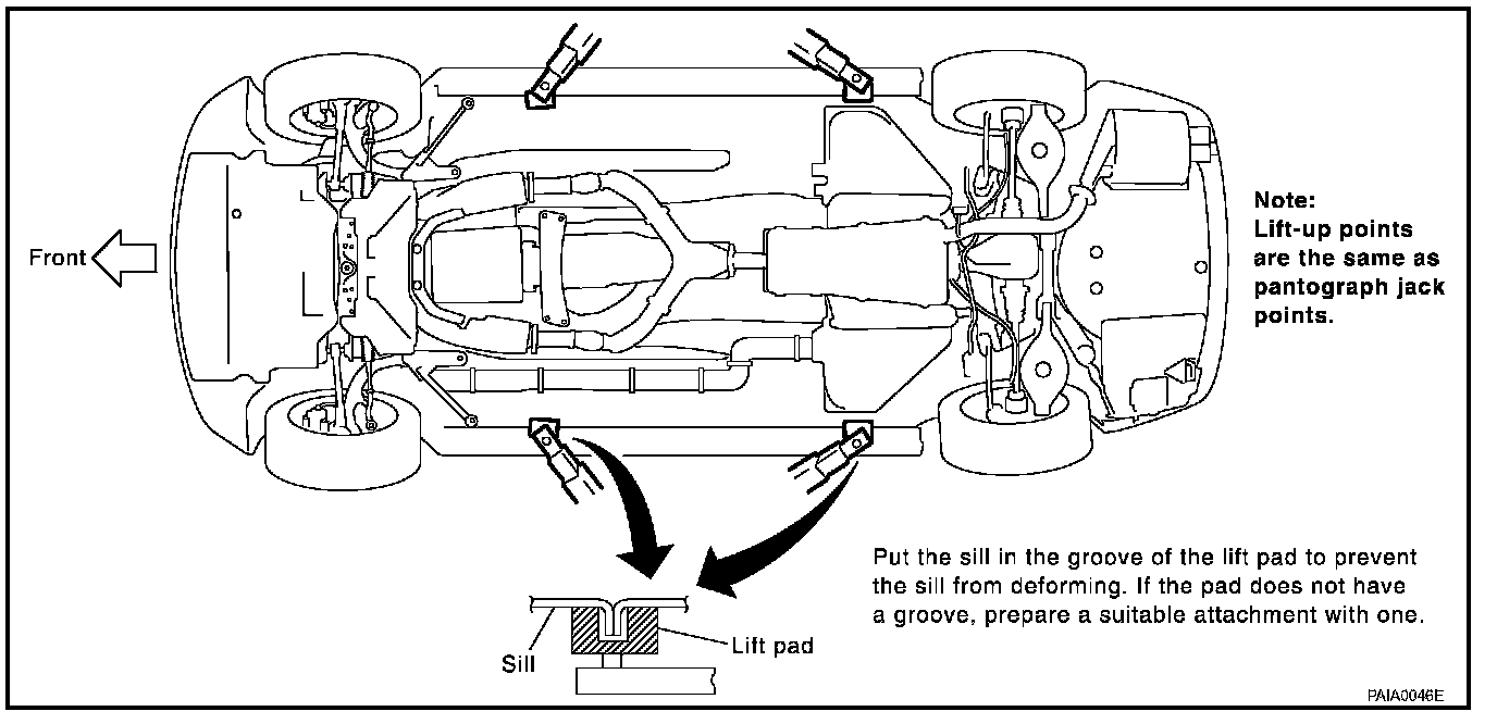 When setting the lift arm, do not allow the arm to contact the brake tubes, brake cable, fuel lines and sill spoiler.