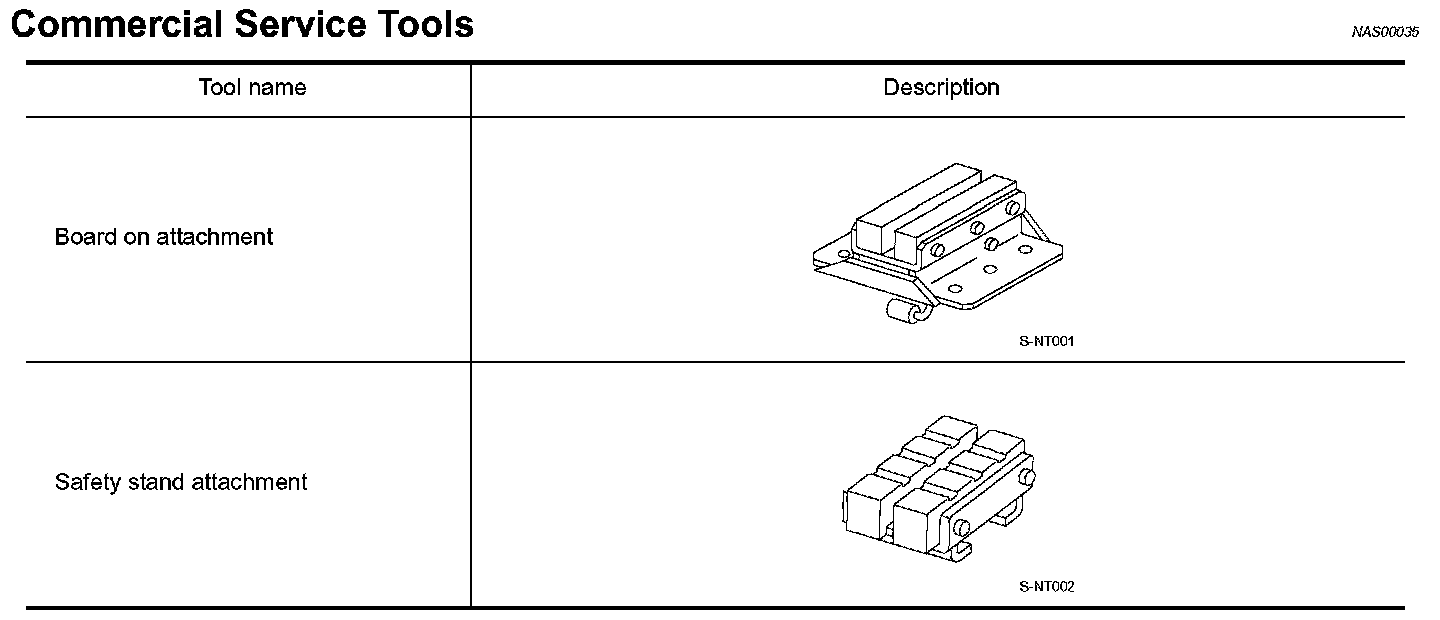 - Since the vehicle's center of gravity changes when removing main parts on the front side (engine, transmission, suspension etc.), support a jack up point on the rear side garage jack with a mission jack or equivalent.