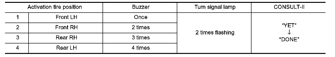 NOTE: Be sure to register the IDs in order from FR LH, FR RH, RR RH, to RR LH, or the self-diagnostic results display will not function properly.