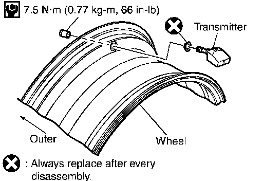 1. Deflate tire. Unscrew transmitter retaining nut and allow transmitter to fall into tire.