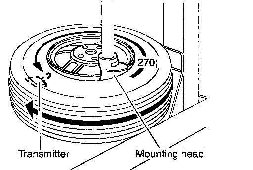 3. Place wheel on turntable of tire machine. Ensure that transmitter is 270 degree from mounting head when second side of tire is fitted.
