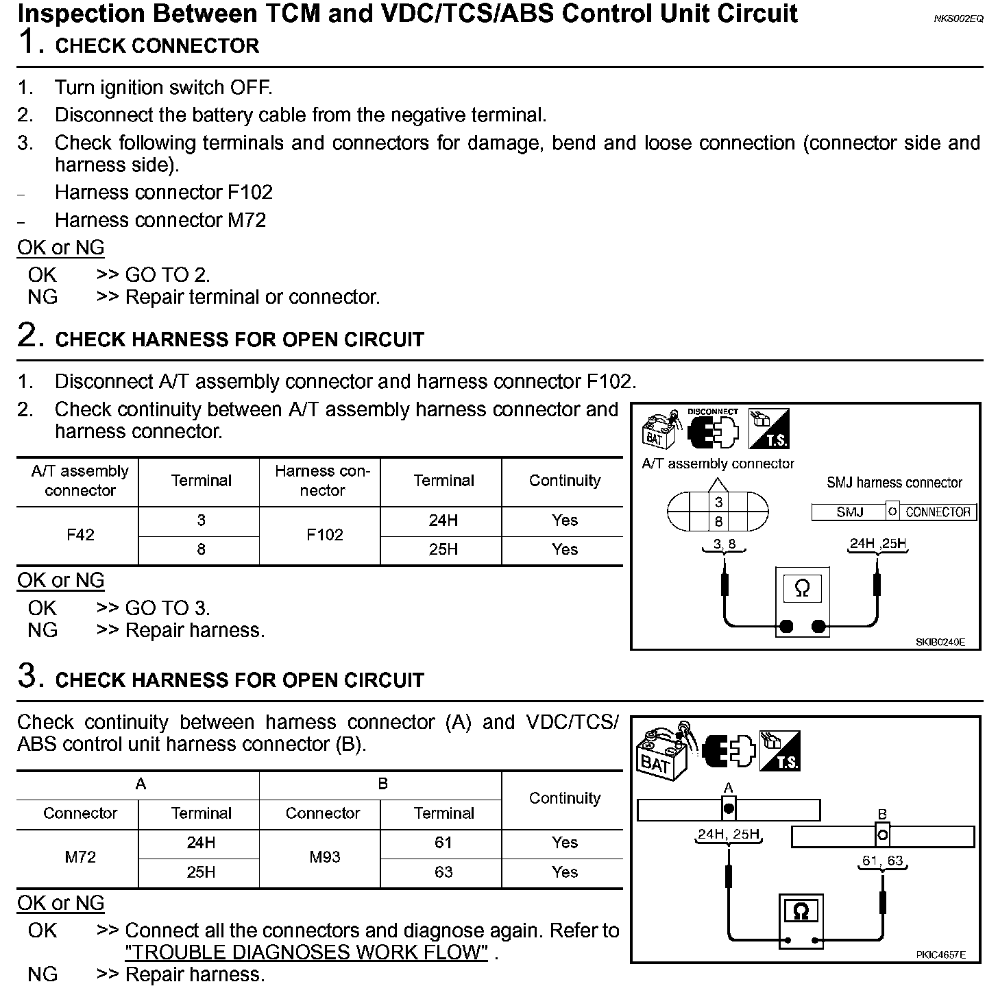 Inspection Between TCM and VDC/TCS/ABS Control Unit Circuit