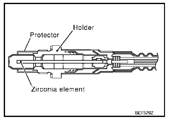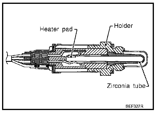 This sensor is made of ceramic zirconia. The zirconia generates voltage from approximately 1 V in richer conditions to 0 V in leaner conditions. Under normal conditions the heated oxygen sensor 2 is not used for engine control operation.