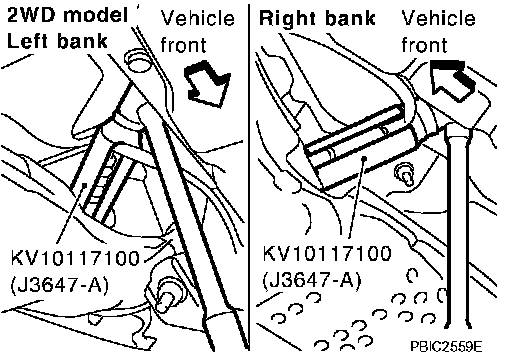 5. Disconnect harness connector and remove heated oxygen sensor 2 on both banks with heated oxygen sensor wrench [SST].