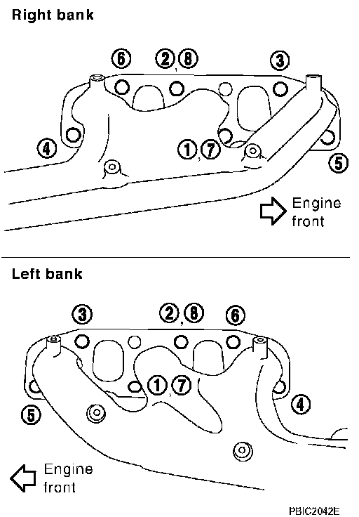 ^ Install exhaust manifold in numerical order as shown in the figure.
