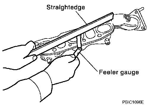 ^ Check the surface distortion of the exhaust manifold mating surface with straightedge and feeler gauge.