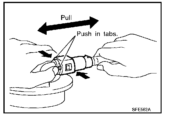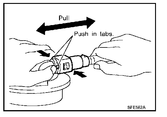 - Hold the sides of connector, push in tabs and pull out fuel feed tube.