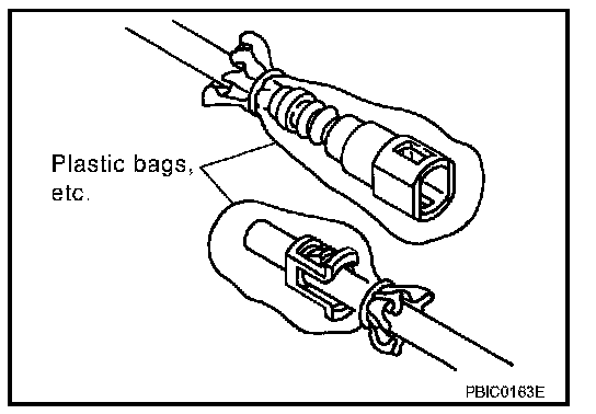 - To keep the connecting portion clean and to avoid damage and foreign materials, cover them completely with plastic bags or something similar.
