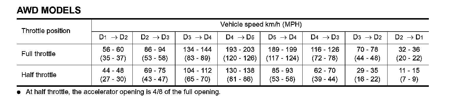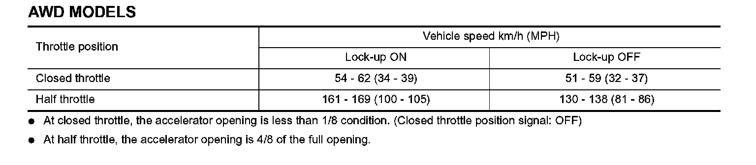 Vehicle Speed at Which Lock-up Occurs/Releases: