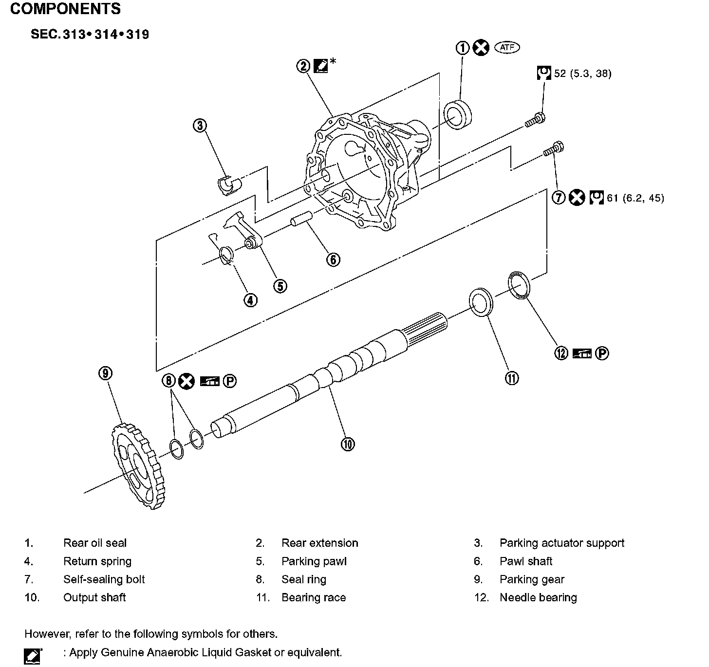 Check parking components. Refer to AT-243, Parking Components (2WD Models Only).