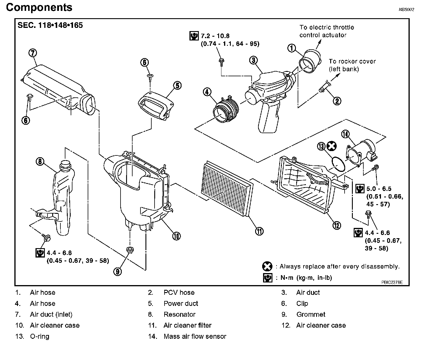 ^ This work is unnecessary when parts located forward of mass air flow sensor are removed/installed.
