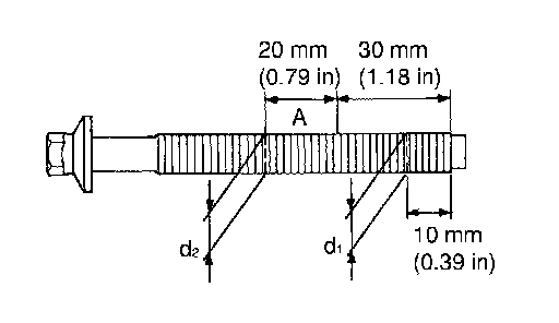 ^ If it exceeds the limit (large difference in dimensions), replace main bearing cap bolt with new one.