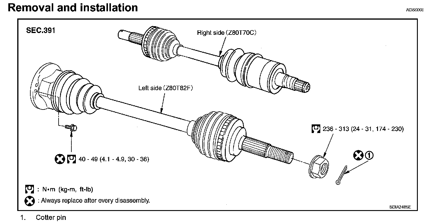 236 - 313 Nm (24 - 31 kg-m, 174 - 230 ft. lbs.)