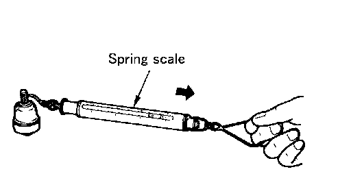 ^ Hook spring scale at ball stud. Confirm spring scale measurement value is within the specifications when ball stud begins moving.