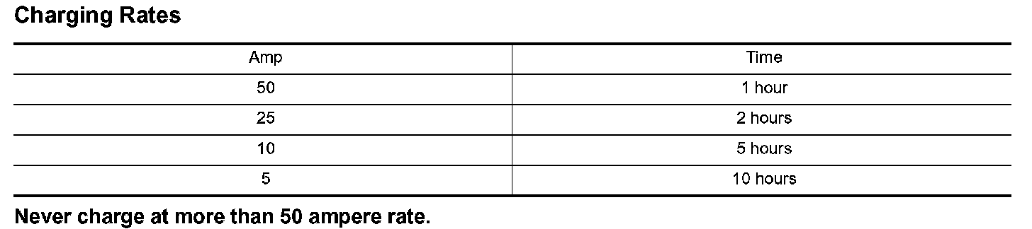 NOTE: The ammeter reading on your battery charger will automatically decrease as the battery charges. This indicates that the voltage of the battery is increasing normally as the state of charge improves. The charging amps indicated above refer to initial charge rate.