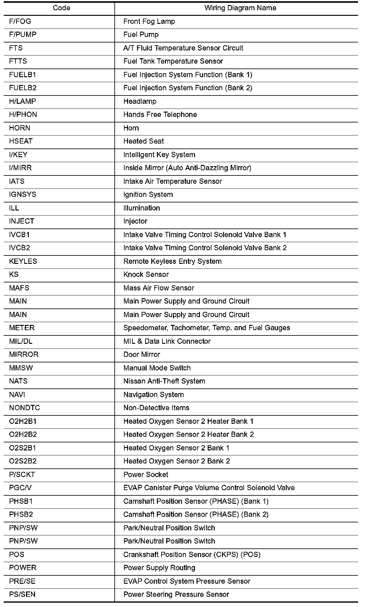Wiring Diagram Codes/Abbreviations Part 1: