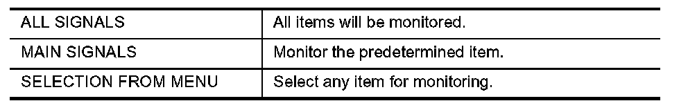 3. Touch the required monitoring item on "SELECTION FROM MENU". In "ALL SIGNALS", all items are monitored. In "MAIN SIGNALS", predetermined items are monitored.