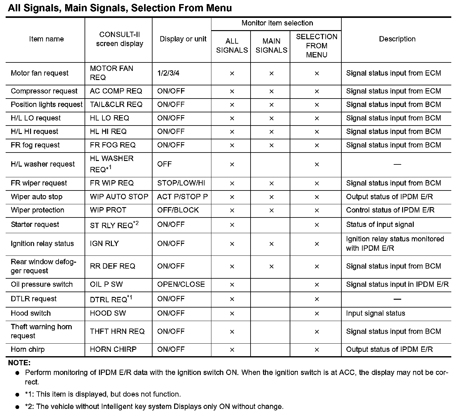 2. Touch "ALL SIGNALS", "MAIN SIGNALS" or "SELECTION FROM MENU" on the "DATA MONITOR" screen.