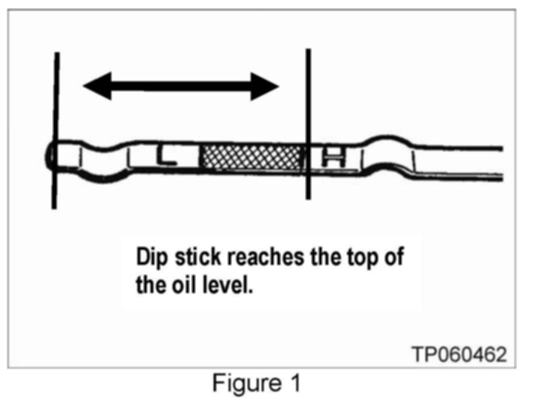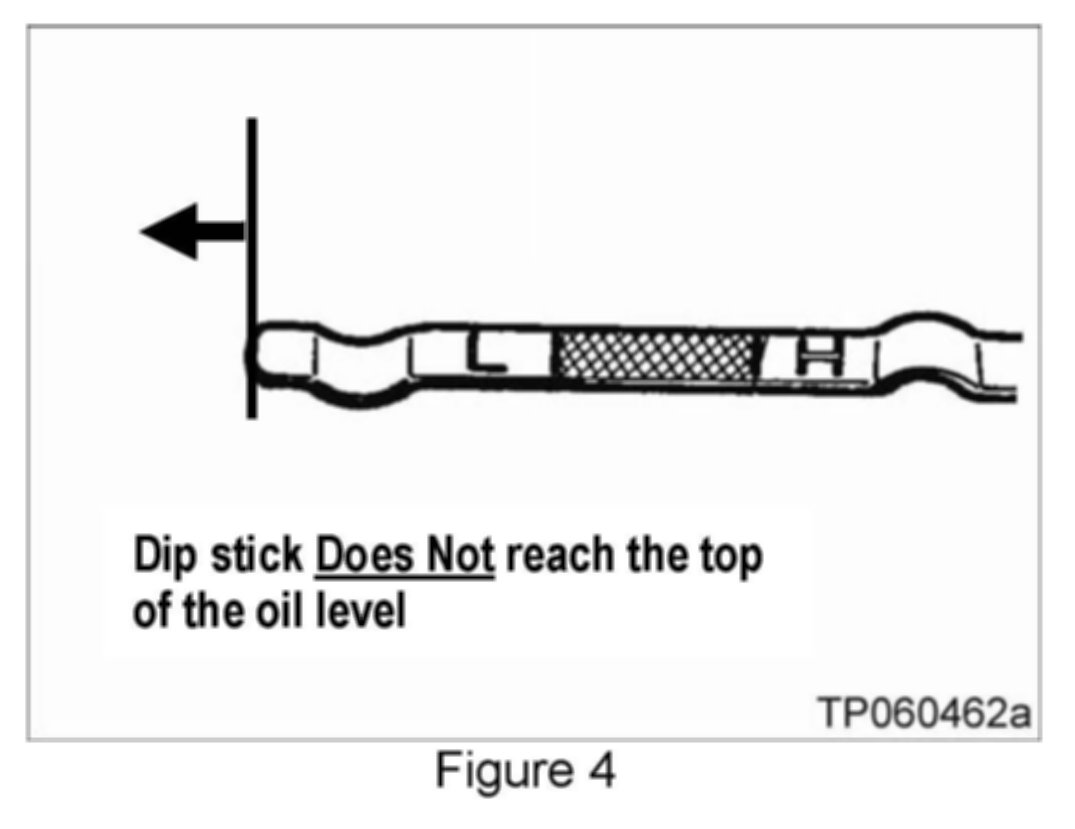 Oil level is found in the range shown in Figure 4, (not registered on the dip stick at all), perform steps 8 though 11.