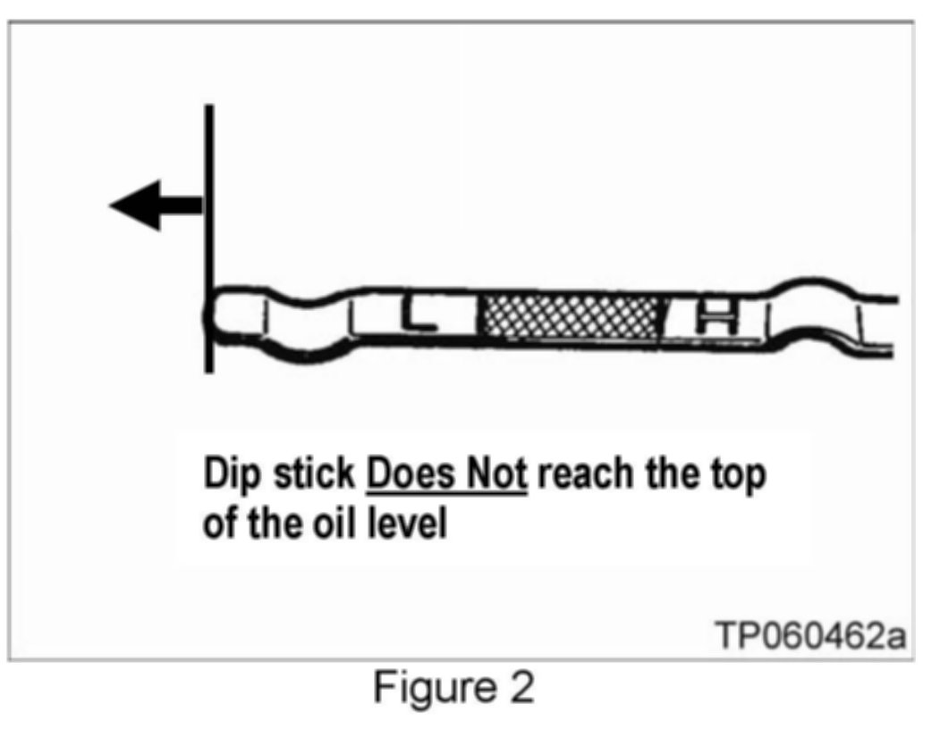 If the oil level is in this range (Figure 2; not registered on the dip stick at all):