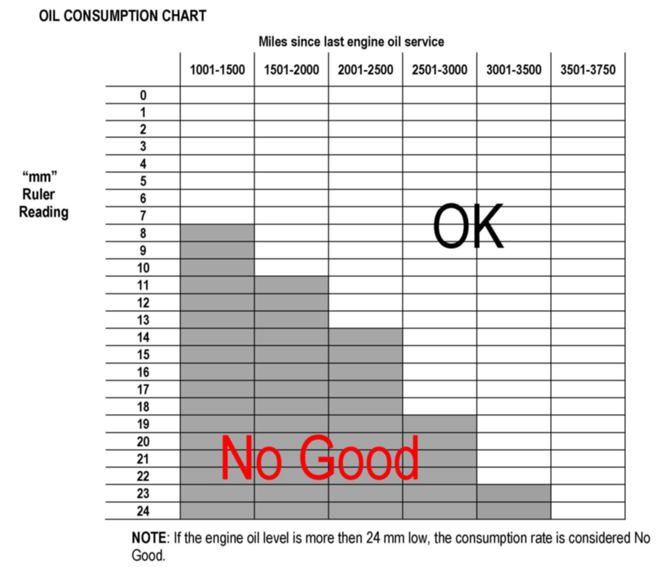 16. Select the correct mileage range at the top of the Oil Consumption Chart shown above.