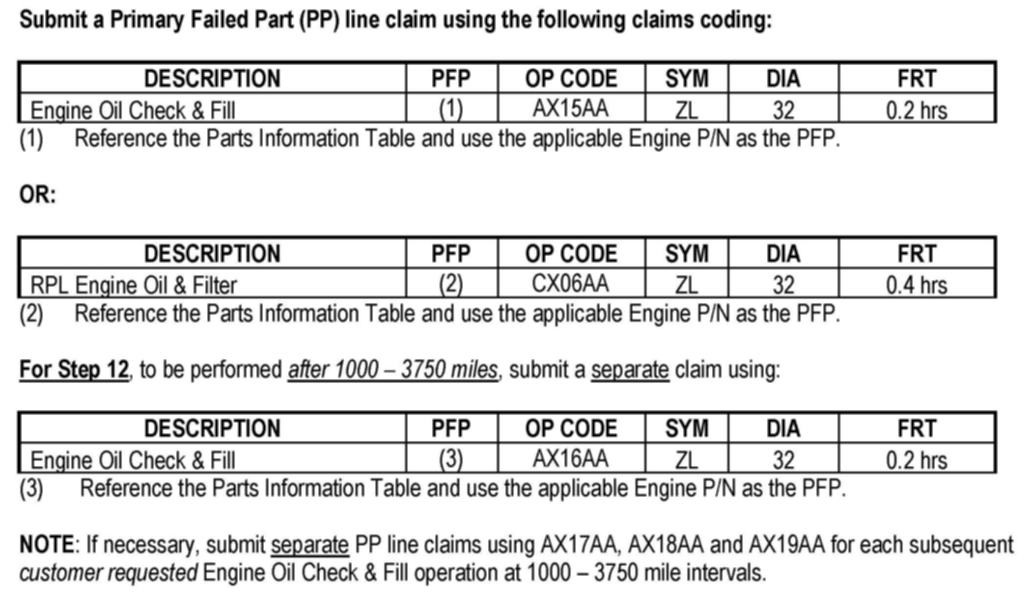 For the purposes of this bulletin, the following documentation for oil level checked and filled will be accepted.