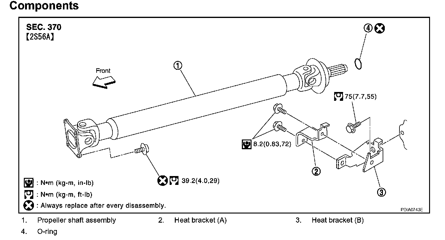 3. Remove front propeller shaft. (AWD models) Refer to PR-14 Components.