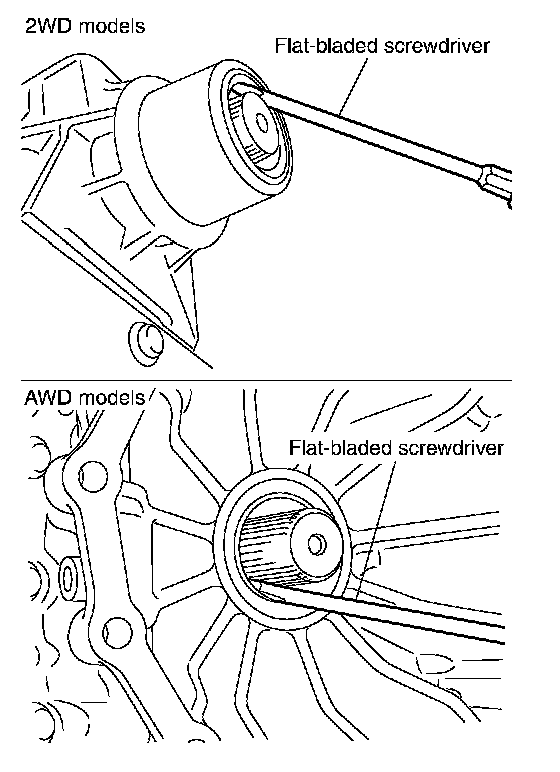 CAUTION: Be careful not to scratch rear extension assembly (2WD models) or adapter case assembly (AWD models).