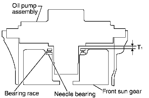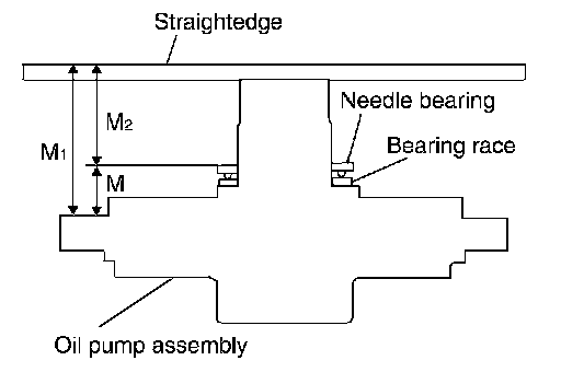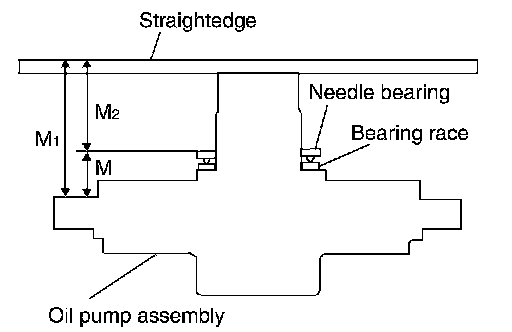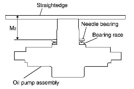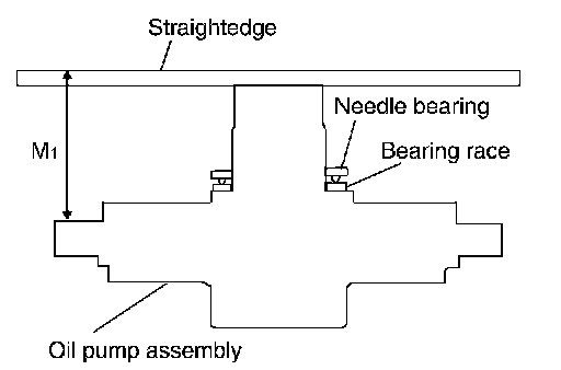 M: Distance between transmission case fitting surface of oil pump and needle bearing on oil pump.