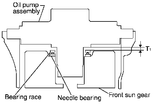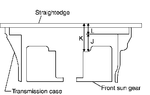 J: Distance between oil pump fitting surface of transmission case and needle bearing mating surface of front sun gear.