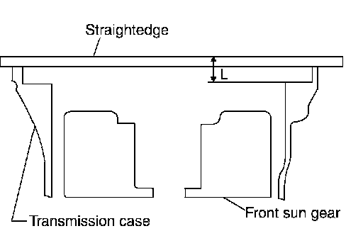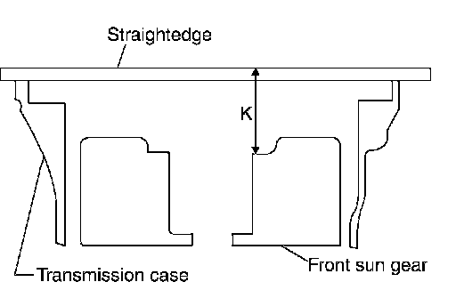 ^ Measure clearance between front sun gear and bearing race for oil pump cover.