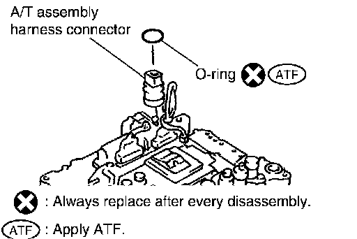 d. Install O-ring to A/T assembly harness connector.